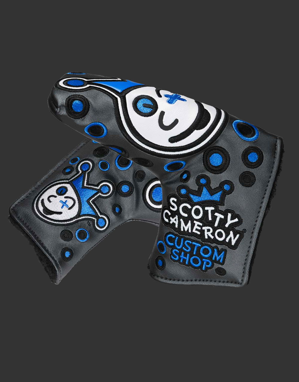 First released in our Custom Shop, and offered here in the Studio Store due to popular demand, our Jackpot Johnny headcover with hits of Turbo Blue is an expertly embroidered putter protector crafted to fit Scotty Cameron blade-style putters.