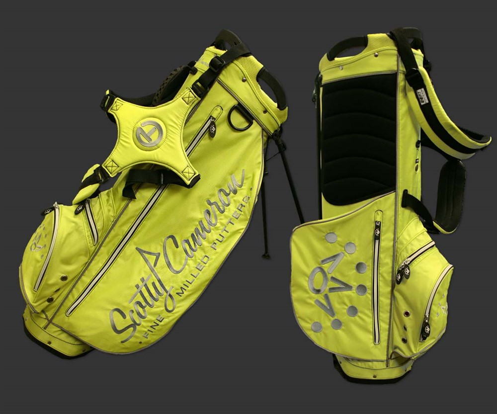 Designed especially by Scotty with expert bag makers Sun Mountain, this sublimely lime stand bag isn't shy. With elegantly embroidered gray PinFlag, 7 Point Crown and Circle T emblems, it's everything you're looking for in a stand bag and more. With three padded rows for your clubs and top dimensions of 10.25" x 9", this bag is as great-looking as it is functional. Check out the 7 Point Crown zipper pulls, pen holder, ample pockets for your golf gear, and legendary Sun Mountain design and construction. This bag won't last long, so get yours today only here in the Studio Store on ScottyCameron.com.
