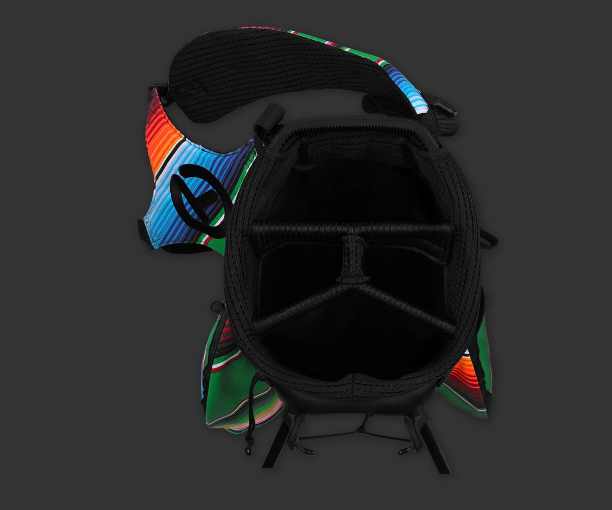 Hands-down, this might be the greatest stand bag we've ever released. Each limited piece, a true original, as the vibrant fabric was cut from varied swaths of Mexican blanket-themed canvas, each yard revealing a unique, colorful pattern. Then, legendary bag builders, Sun Mountain, executed Scotty's vision, crafting these unique creations just for us. This is the most fun you can have with a golf bag. With ample pockets, the patented E-Z Fit Dual Strap System and Circle T badging throughout, it's a must-have.
